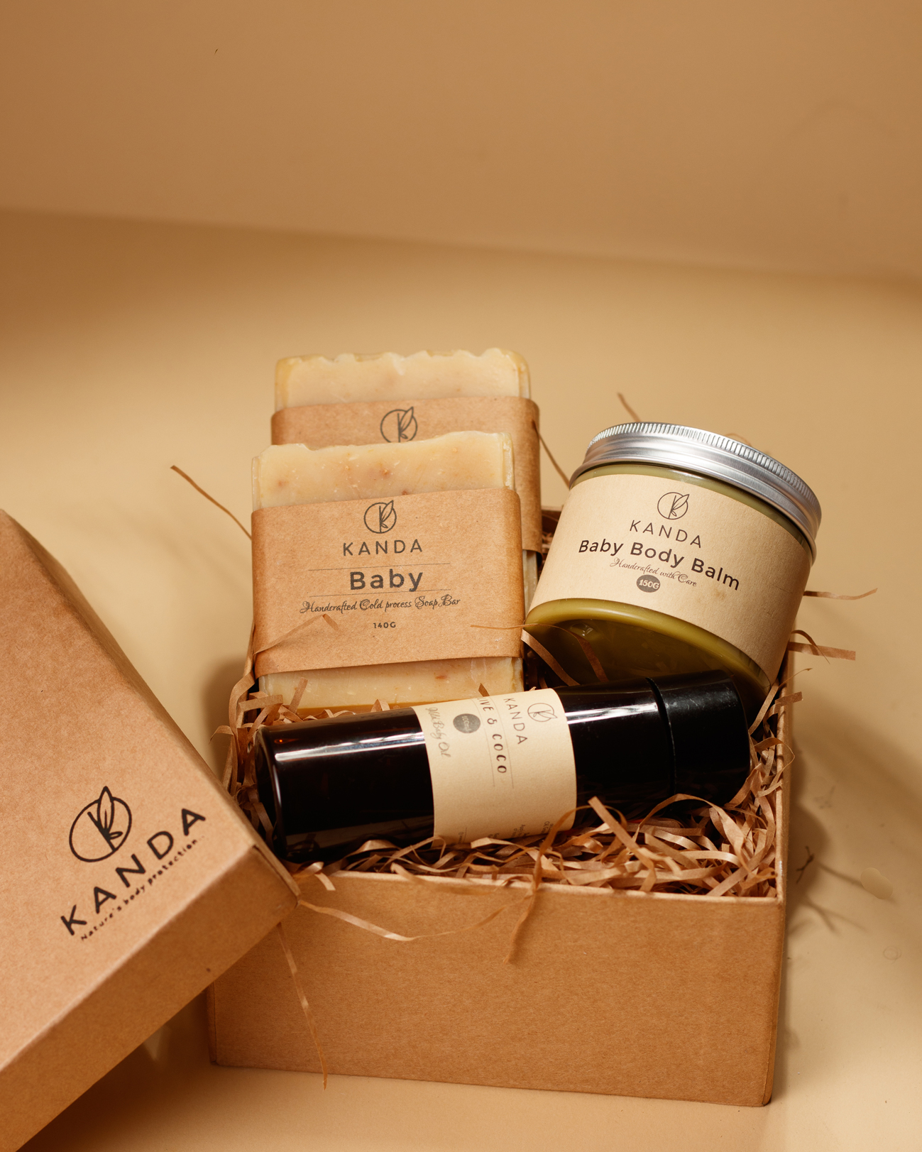 Sabi Baby Gift Box Includes: Box Packaging, 2 baby Soap, 1 150g Baby Body Balm, 1 Baby oil